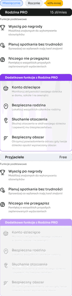 “Rodzina Pro” to specjalny plan subskrypcyjny, który w cenie 15 zł/mies zapewnia dostęp do typu grupy przystosowanej pod codzienne rodzinne wyzwania.