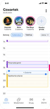 Aplikacja umożliwia tworzenie prywatnych i grupowych kalendarzy, które pozwalają na łatwe i intuicyjne tworzenie planu dnia/tygodnia.